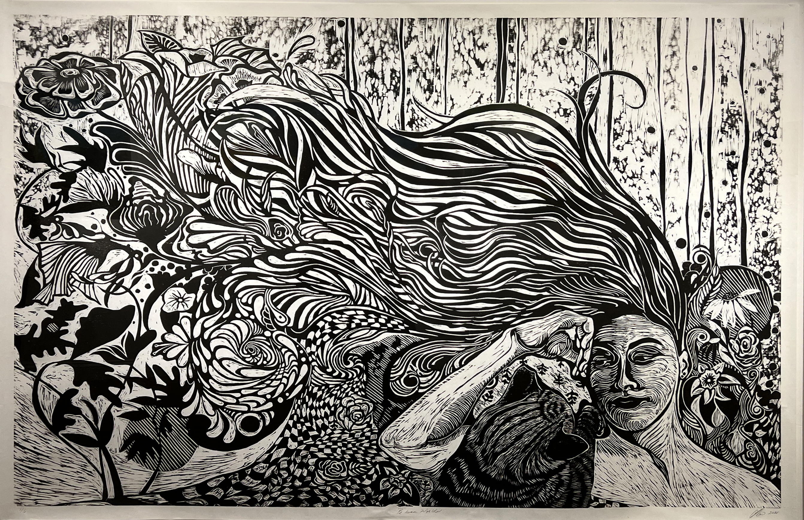 Between Worlds$2000Hand-carved Woodblock Print, 40" x 60" |